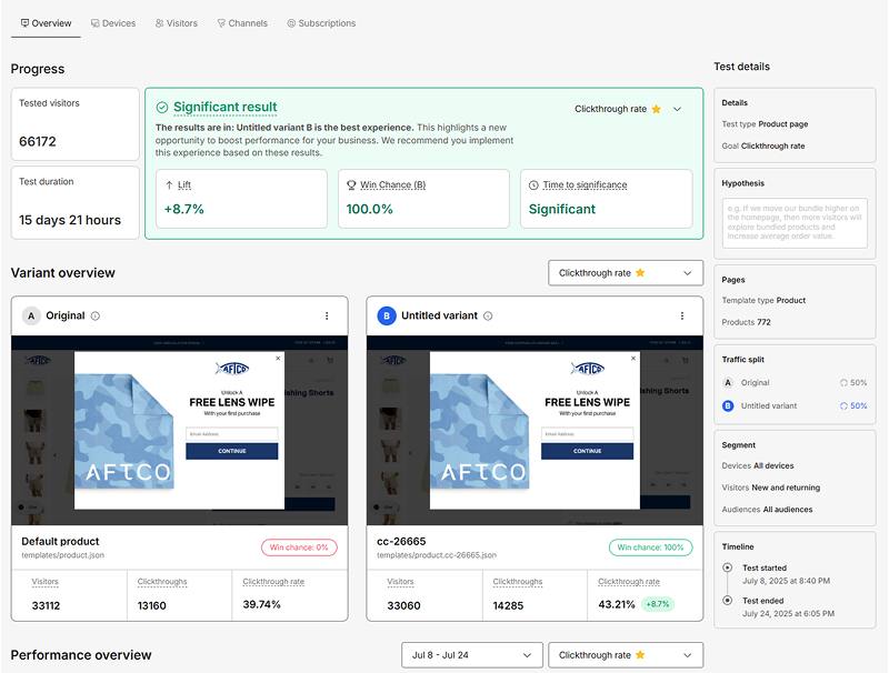 Our Shoplift export tool turns your A/B test results into JSON files that AI can read and analyze in seconds. Save yourself hours of manual data analysis and spot trends most humans would miss.